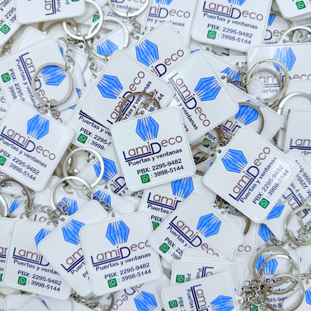 Llaveros económicos con sticker – cuadrados